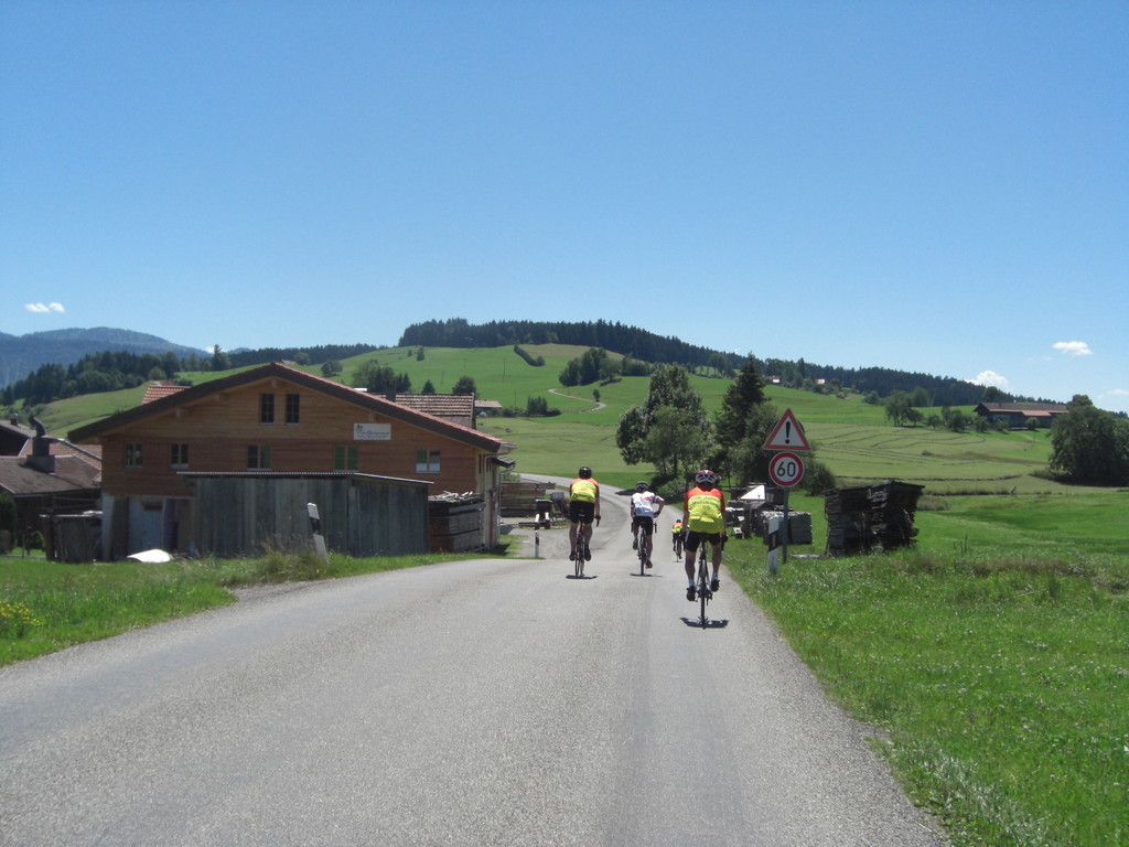 Die Ehefrauen von Henry und Jürgen sorgten dabei für den Transport des Gepäcks und die Versorgung der Sportler mit Getränken und Stärkungen. Zunächst mußten die Tourteilnehmer auf die Höhen des bayerischen Voralpenlandes mit den Rennrädern klettern.